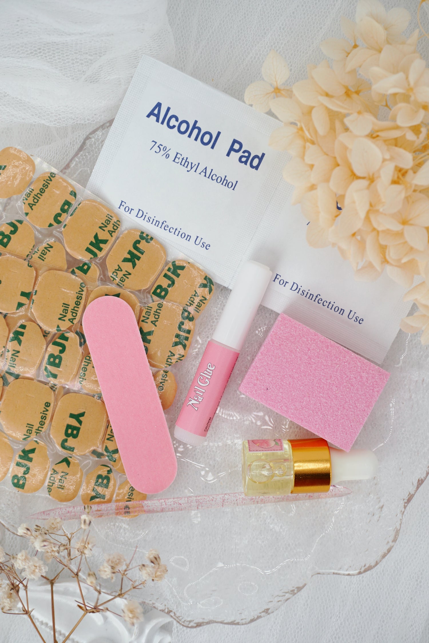 2 Alcohol Wipes to clean and prep your nails, ensuring long-lasting adhesion.